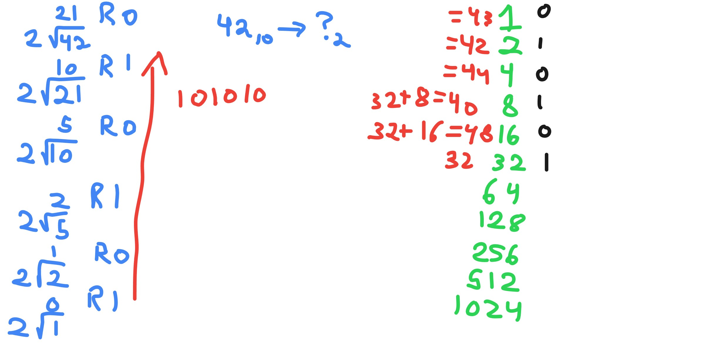 Can you convert the number 42 (base 10) to binary (base 2)?